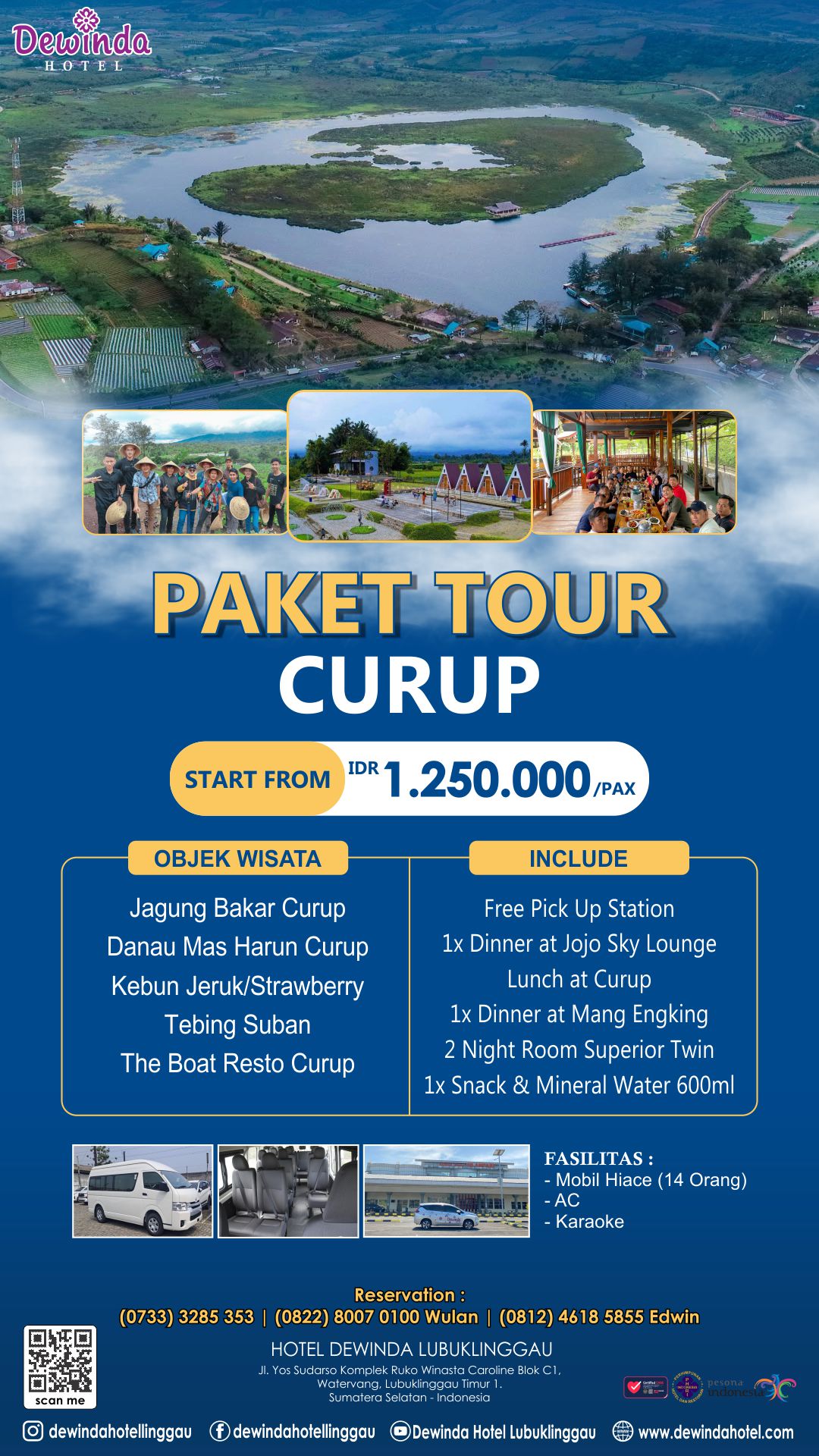 Butuh liburan yang segar, tenang, tapi tetap seru dan penuh pengalaman baru?Saatnya kamu menjelajahi keindahan alam Curup bersama Dewinda Hotel!Mulai dari IDR 1.250.000/pax, kalian sudah bisa menikmati perjalanan wisata yang lengkap dan berkesan. Fasilitas super nyaman:• Mobil Hiace (14 seat) ber-AC + karaoke buat seru-seruan di jalan 🎶• Penginapan 2 malam di Superior Twin Room […]