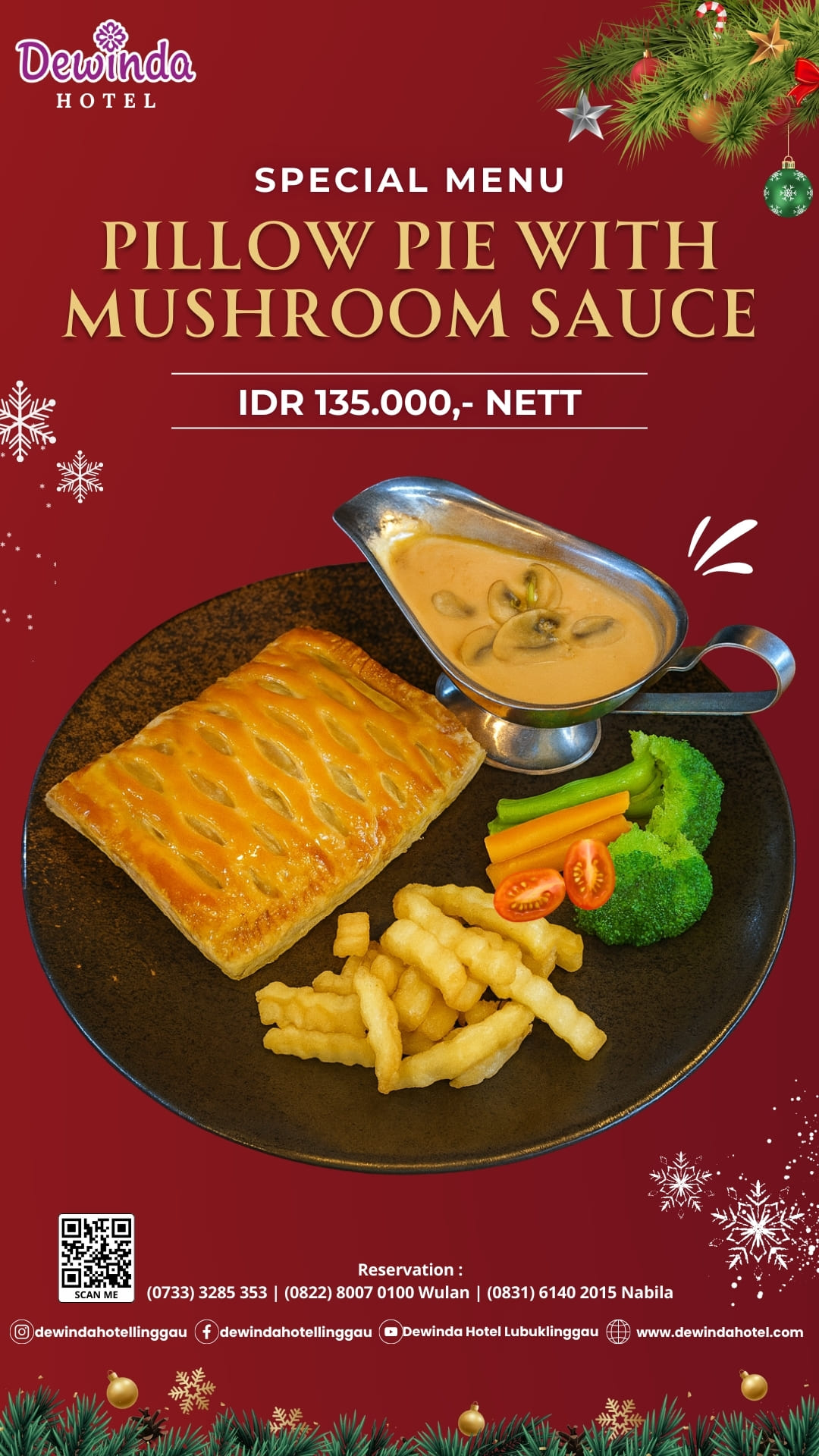 Dewinda Hotel menghadirkan menu terbaru yang wajib banget kamu coba:Pillow Pie with Mushroom Sauce — kombinasi sempurna antara pastry renyah yang dipanggang golden brown, berpadu dengan saus jamur creamy yang lembut dan gurih di setiap suapan. 🍄🤤 Disajikan lengkap bersama crinkle fries, sayuran segar, dan plating cantik yang bikin momen makanmu semakin berkelas ✨Sempurna untuk […]