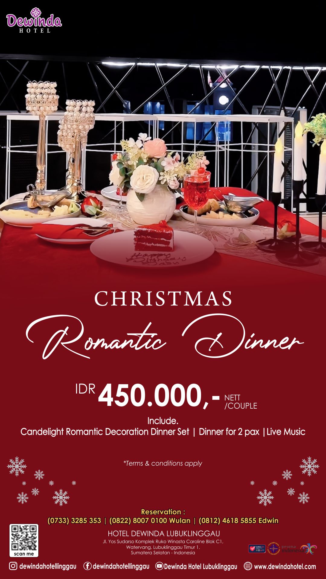 CHRISTMAS ROMANTIC DINNER ❤️Ingin merayakan Natal dengan cara yang lebih spesial, mewah dan penuh kehangatan? Dewinda Hotel menghadirkan Romantic Dinner bertema Christmas yang super elegan dan unforgettable untuk momen berdua yang lebih bermakna. Bayangkan…Cahaya lilin berkelip, dekorasi festive bernuansa merah & gold, iringan live music yang syahdu, dan hidangan spesial tersaji cantik untuk dua orang. […]