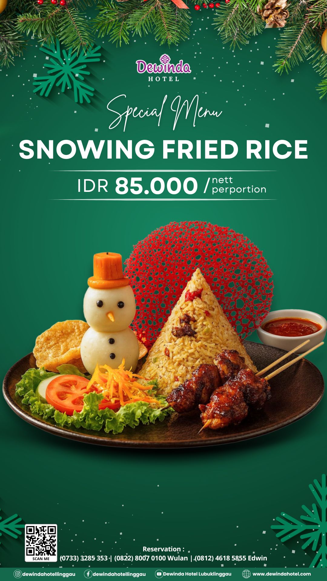 Rayakan kehangatan musim Natal dengan sajian istimewa dari Dewinda Hotel ”Snowing Fried Rice” kreasi eksklusif yang memadukan cita rasa khas nusantara dengan sentuhan artistik bertema winter celebration. Hadir dengan plating yang refined dan memikat, menu ini menampilkan:🍚 Nasi goreng spesial yang kaya aroma dan cita rasa🍢 Sate ayam lembut dengan balutan bumbu manis gurih☃️ Snowman […]