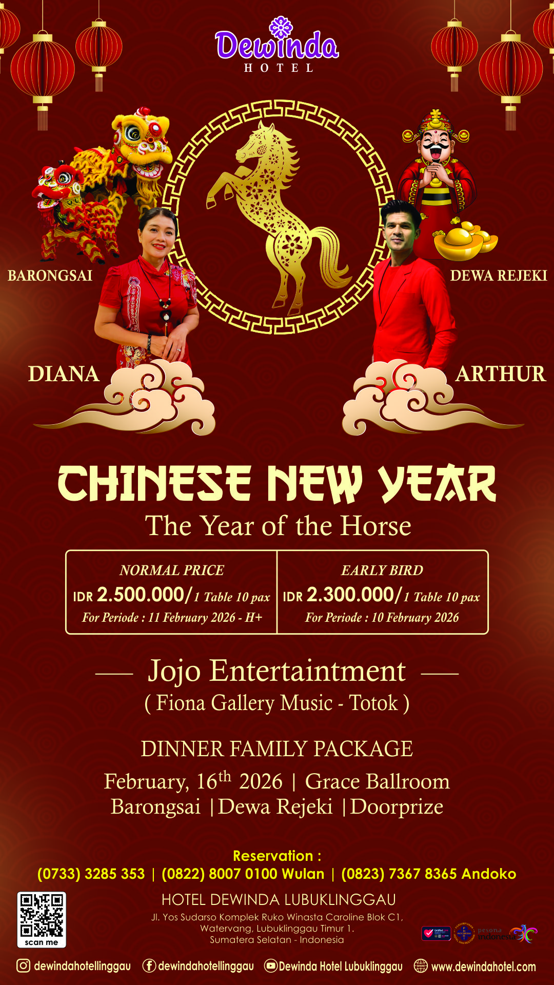 Rayakan Imlek 2026 dengan Kemewahan & Kehangatan Keluarga di Dewinda Hotel. Sambut Chinese New Year – The Year of the Horse dengan penuh sukacita, keberuntungan, dan kebersamaan yang tak terlupakan! Tahun Kuda melambangkan energi, kesuksesan, keberanian, dan kemajuan momen yang tepat untuk merayakan awal baru bersama orang-orang terkasih ❤️ Highlight Acara:✨ Barongsai yang atraktif & […]
