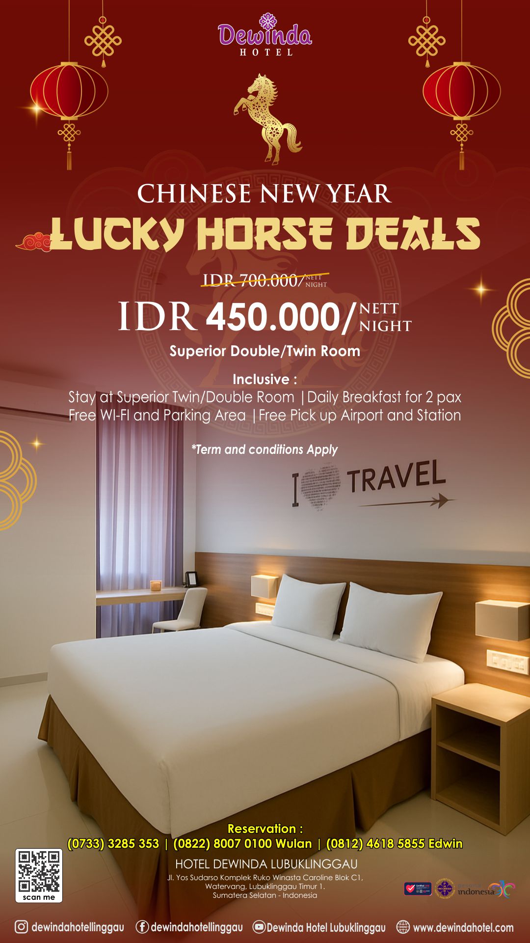 SAMBUT TAHUN BARU IMLEK DENGAN HOKI & KENYAMANAN! Tahun Baru Imlek makin spesial bersama Lucky Horse Deals dari Dewinda Hotel Lubuklinggau.Terinspirasi dari semangat Shio Kuda yang melambangkan keberuntungan, energi, dan kesuksesan, kami hadirkan promo menginap terbaik untuk memulai tahun baru dengan penuh makna ❤️ Spesial Chinese New YearIDR 450.000 / nett / nightSuperior Double / […]