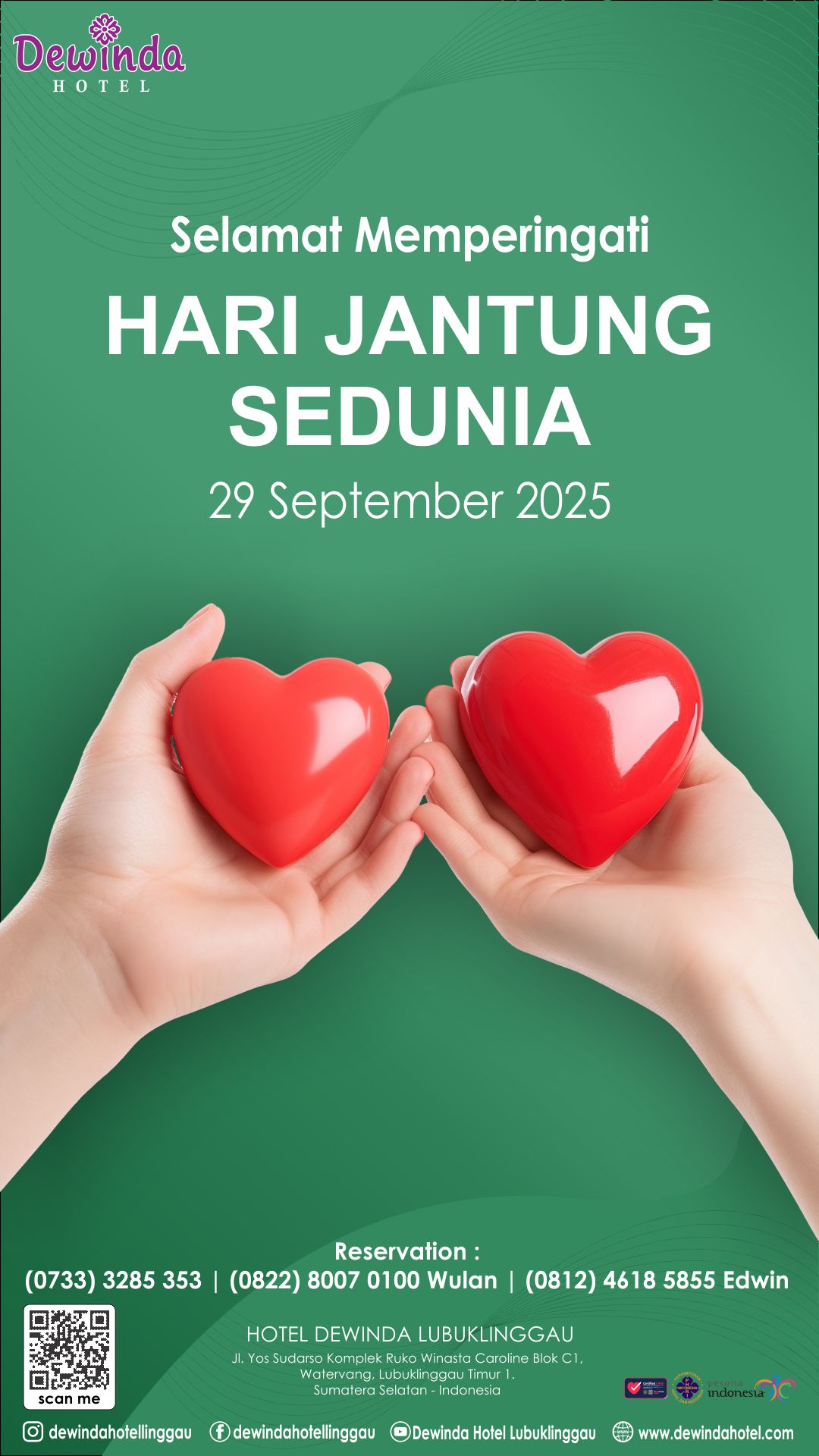 Kami dari Management Dewinda Hotel Lubuklinggau Mengucapkan Selamat Memperingati Hari Jantung Sedunia 29 September 2025.