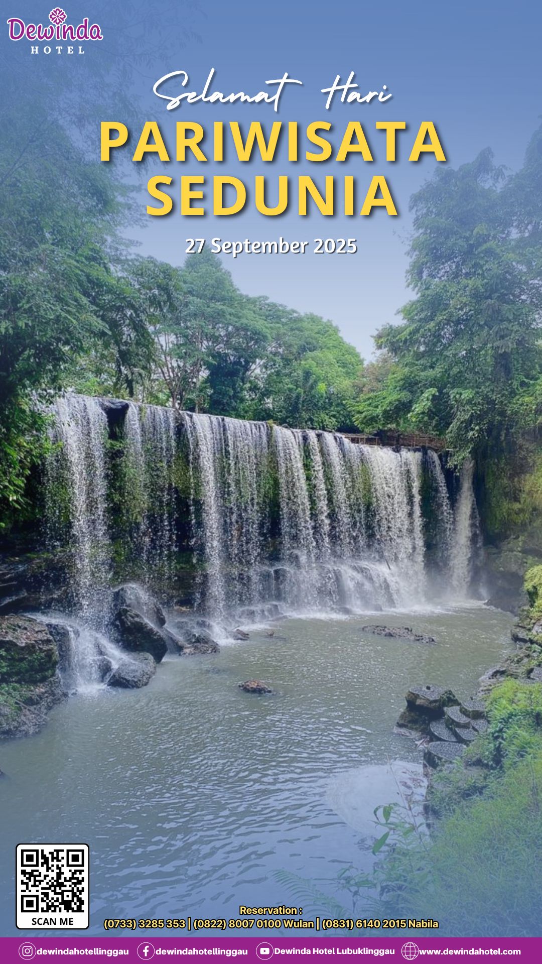 Kami dari Management Dewinda Hotel Lubuklinggau Mengucapkan Selamat Memperingati Hari Pariwisata Sedunia 27 September 2025.